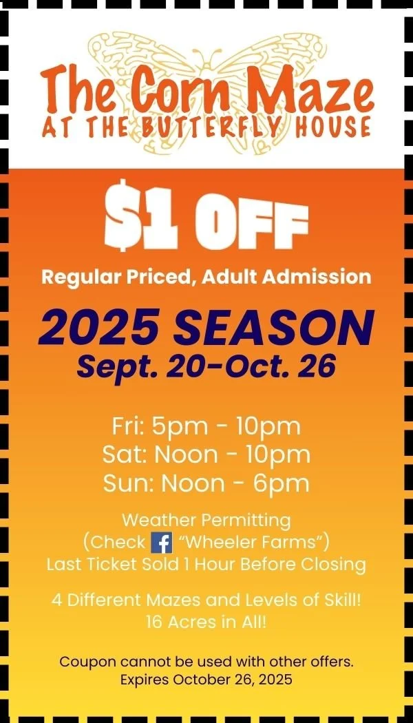 Bring the whole family for hours of wholesome fun. The Corn Maze will entertain kids of all ages!